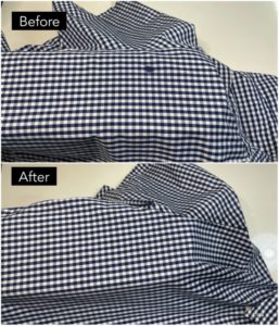 チェック柄のシャツですので強引に擦ってしまうとチェック柄も薄くなってしまいます。
