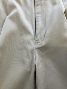 本日はベージュのチノパンツについた血液のシミのシミ抜き事例です。