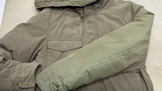 今回お預かりした品物ですが、左袖と肩の部分が脱色しています。おそらくこの部分に日差しが当たっていたのだと思います。