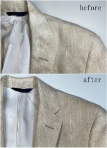 今回は麻100%ジャケットの脱色直しをご紹介します。
